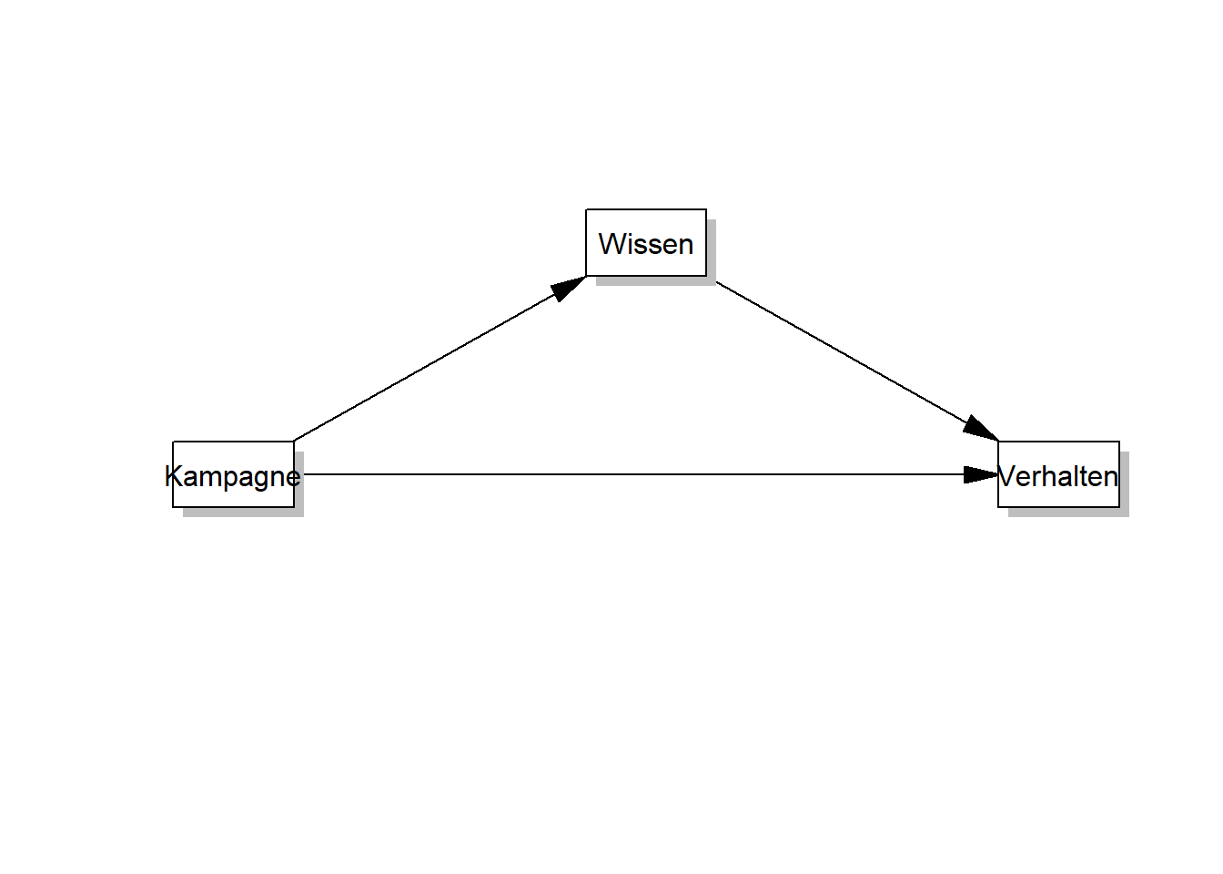 Angenommen Y (Verhalten) soll durch X (Kampagne) vorhergesagt werden, mit einem möglichen Mediator M (Wissen), dann ergeben sich folgende beiden Regressionsmodelle:
